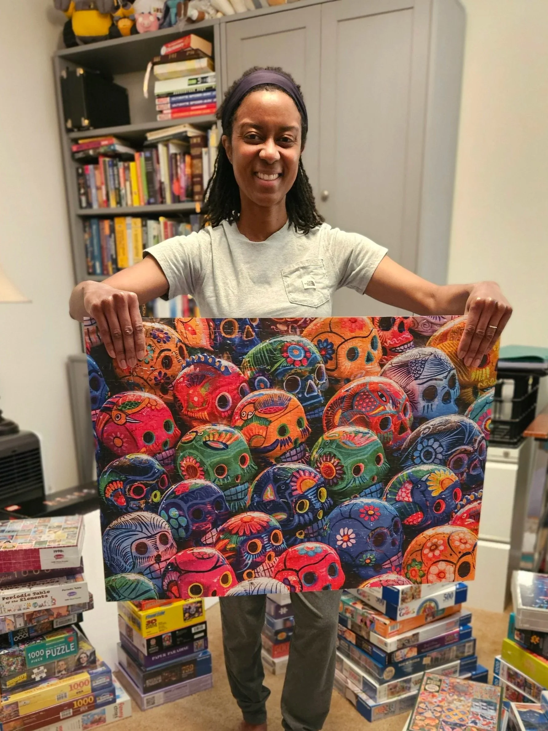 I am an avid puzzler, with a puzzle almost always in progress on my board. Puzzling is a daily pastime and favorite way to unwind and reset during any bit of downtime. I grew up spending long Minnesota winters gathered around puzzles, and that early love never left me. As an adult, I have especially enjoyed puzzling with my sister, Michelle during time together.